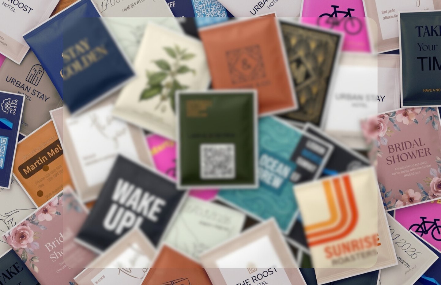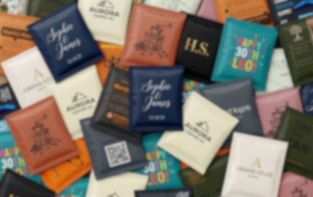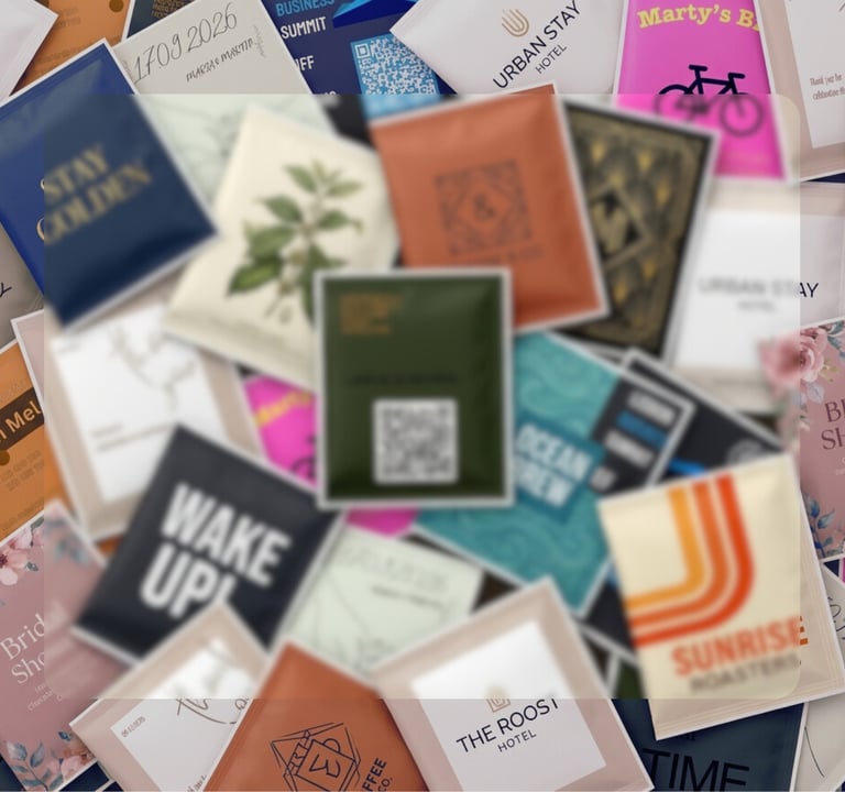 Custom drip coffee bags for hotels, events, weddings and corporate gifting.