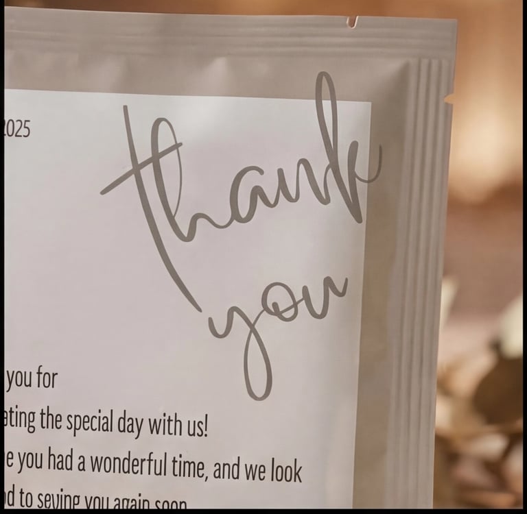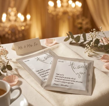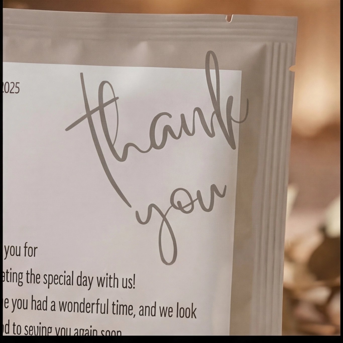 Most wedding favours end up forgotten. Yours won't. A personalised drip coffee bag - with your names, your date, and your story - is something guests actually take home, use, and smile at. A small detail that makes the day feel complete.